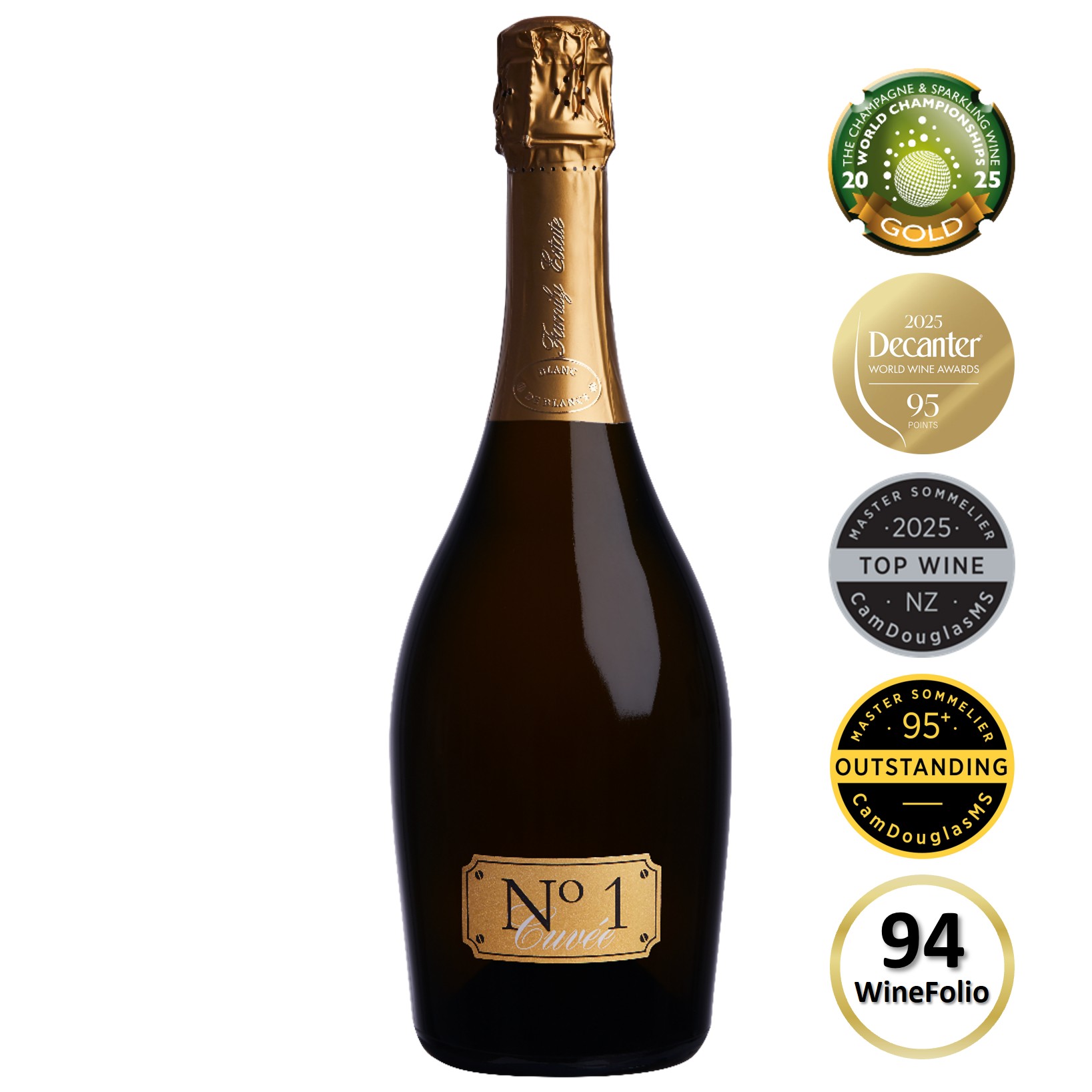 Von Master Sommelier Cameron Douglas als einer der herausragendsten Weine Neuseelands 2025 ausgezeichnet. Die Cuvée No.1 war der erste Wein, den das Weingut No.1 Family Estate produzierte. Dieser aus Chardonnay bestehende Blanc de Blancs zeigt Textur, Finesse und Charme. Typischer, komplexer, Champagner-ähnlicher Charakter mit würzigen Schichten von Zitrusfrüchten und Steinobst.